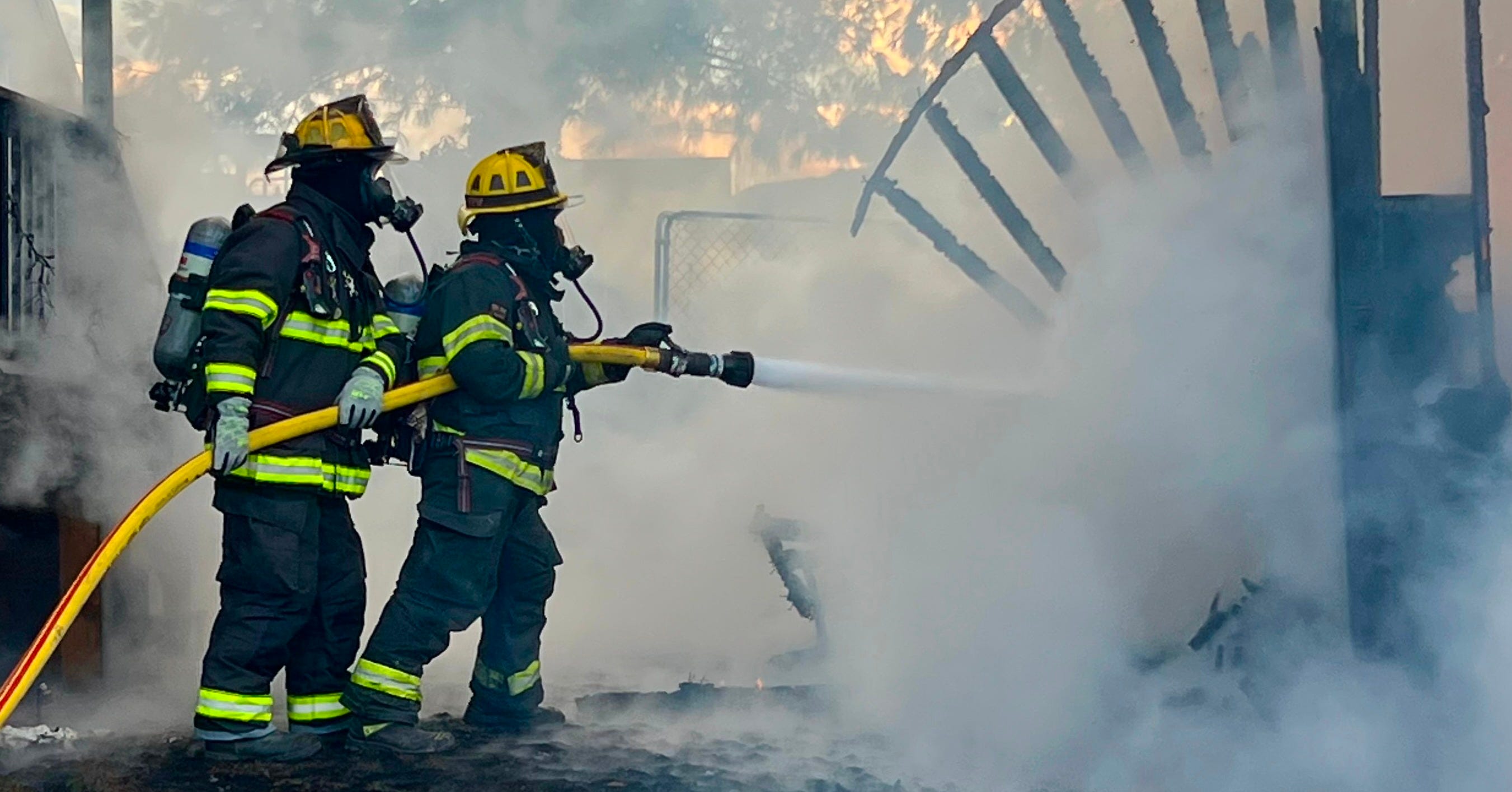 Firefighters advanced two hose lines to extinguish the blaze and cool exposures.