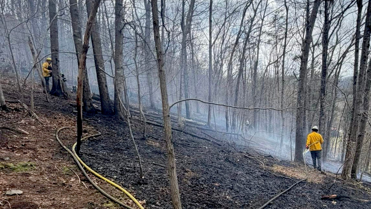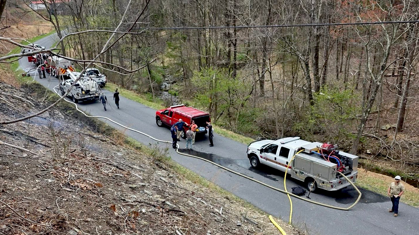 The Virginia Department of Forestry also responded, and Page County EMS staged an ambulance nearby.