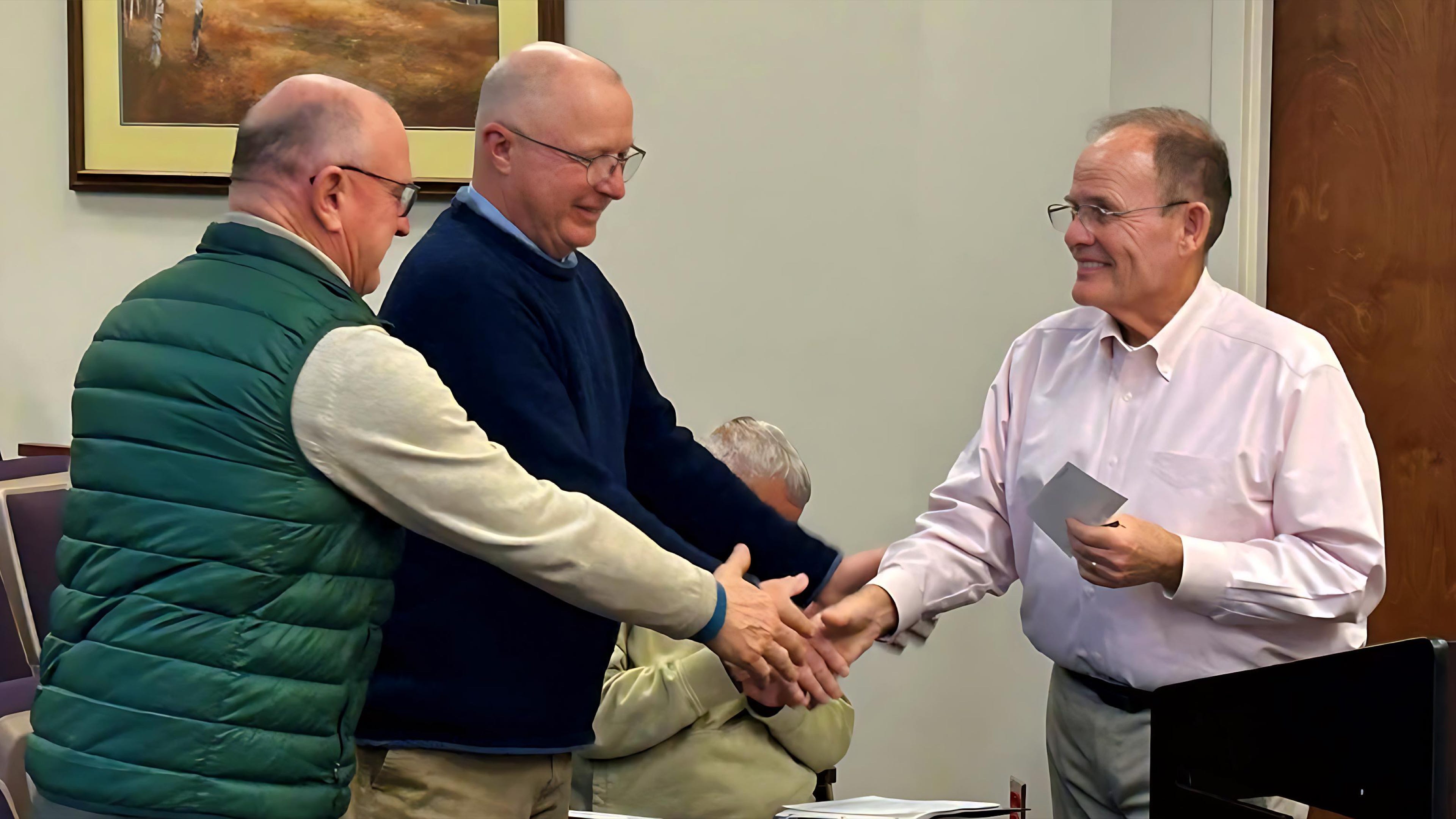Bill Dudley, president of the Hawksbill Greenway Foundation, accepted the donation at the meeting.