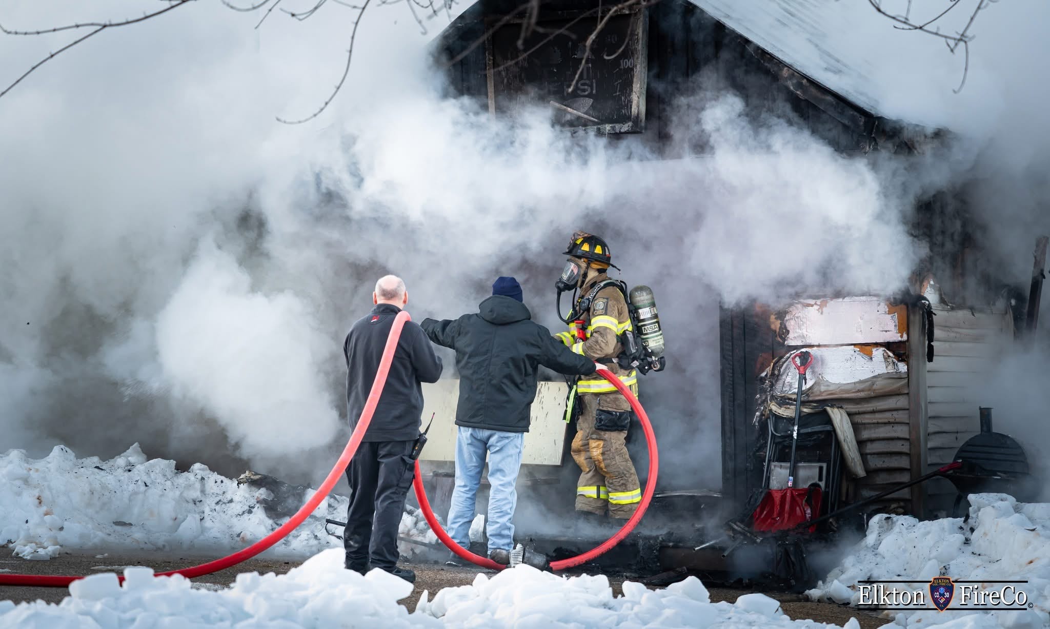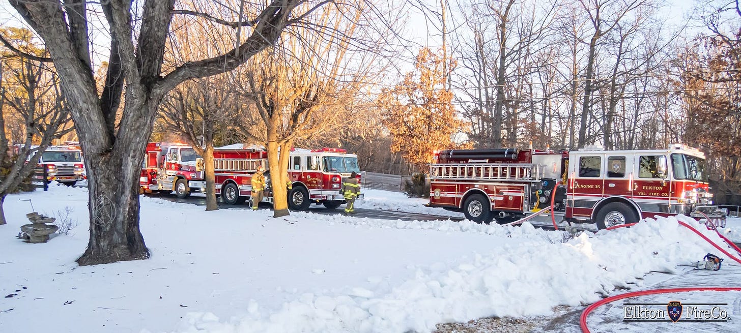 According to the Elkton Volunteer Fire Department, a garage fire was reported on Red Brush Road on February 7, 2026.