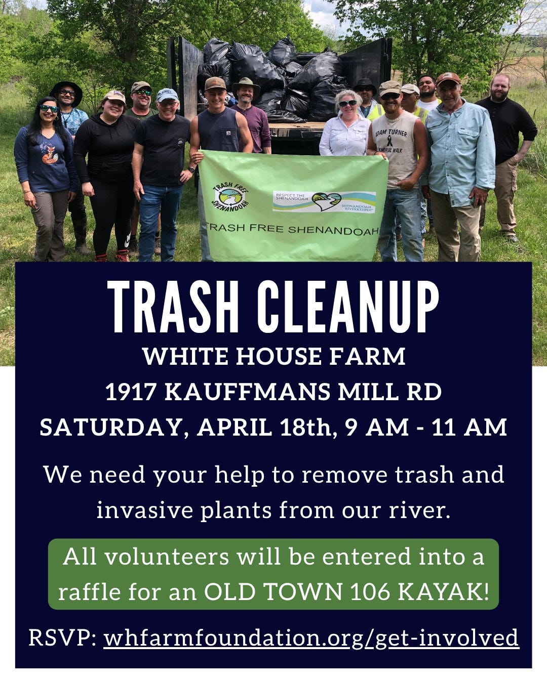 Please join us on Saturday, April 18th for our second annual Trash Free Shenandoah cleanup!