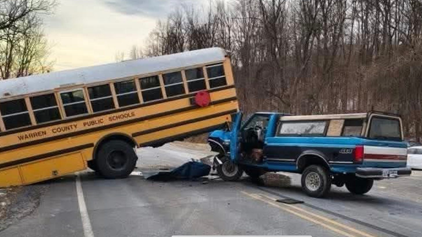 The bus, which was was transporting 10 elementary students, pulled onto US Route 522 from a stop sign at Chester Gap Road. A1994 Ford F-150 was unable to avoid colliding with the bus.