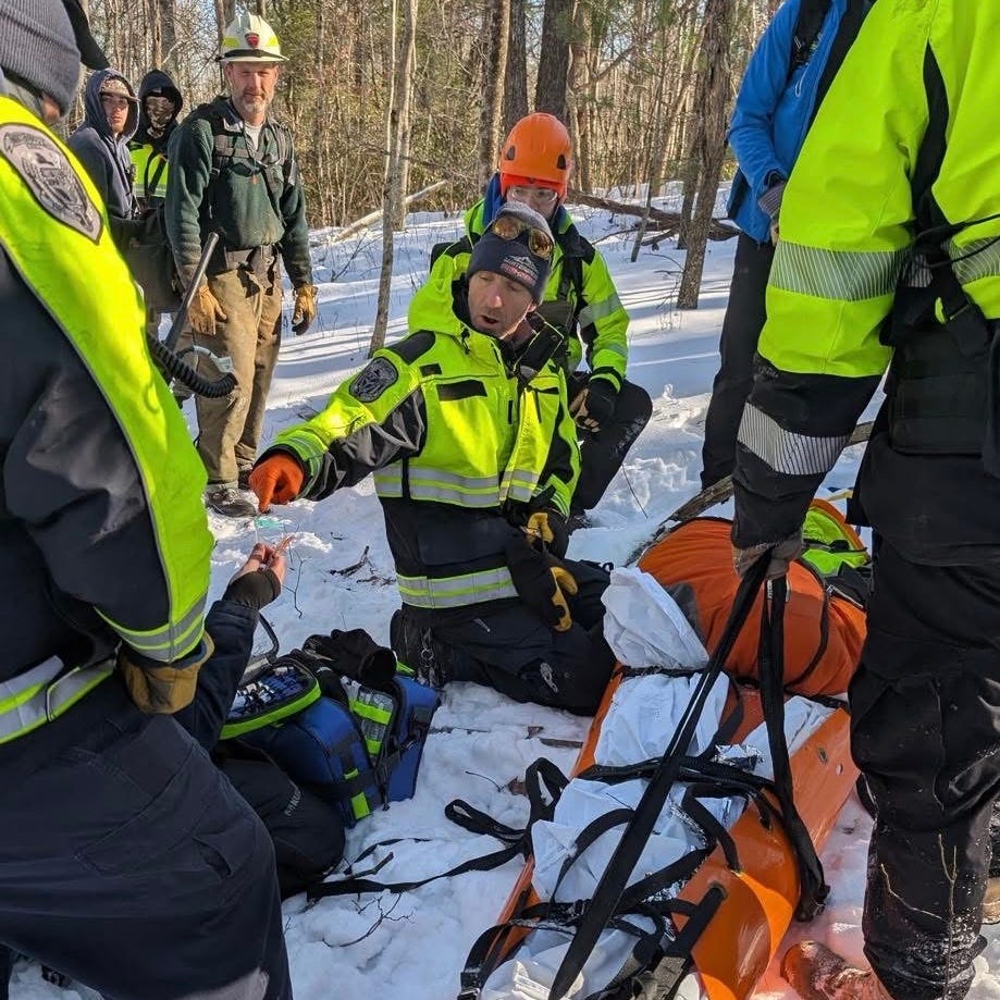 With 32 responders on the trail, the extraction accelerated, and teams reached the parkway as the HART helicopter arrived.
